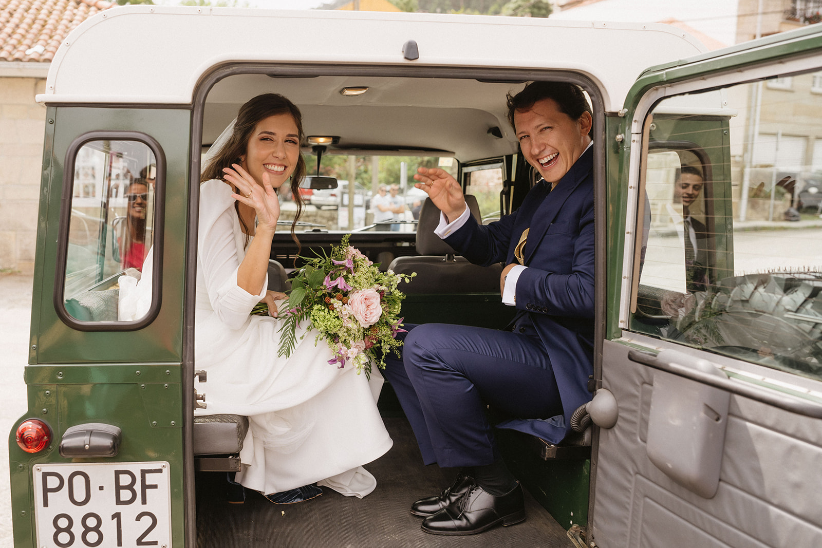 Raquel llegó a la iglesia en un Land Rover que no dejó indiferente a nadie.