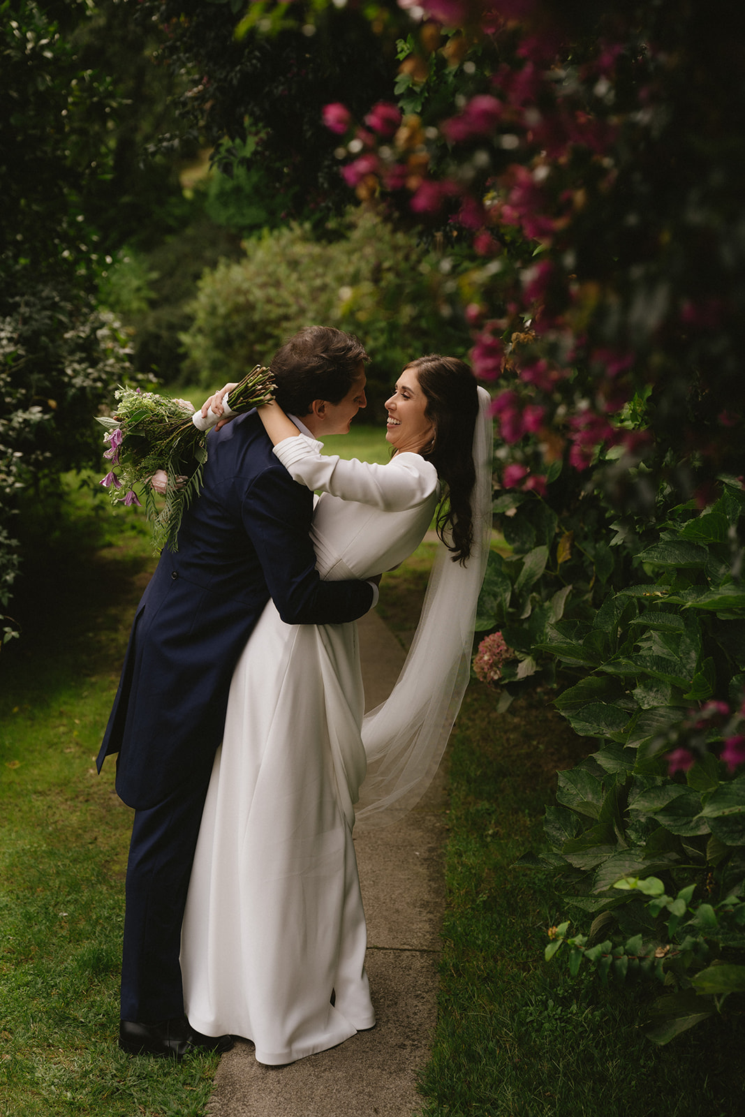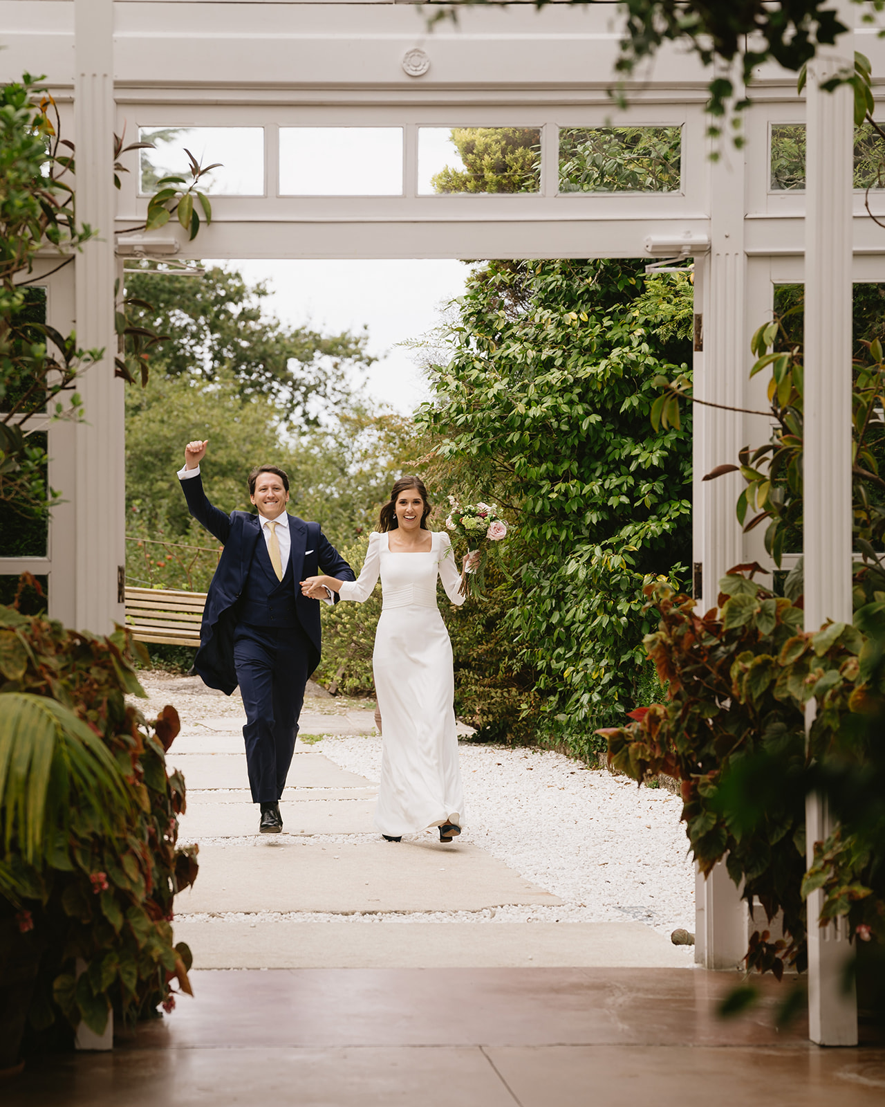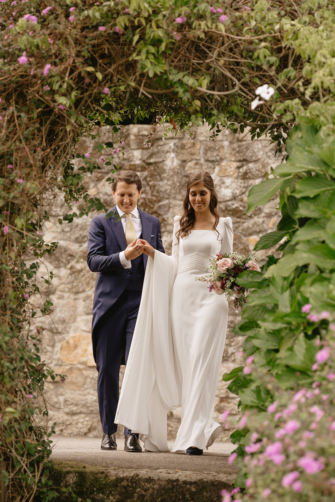 Al regresar al pazo hicieron su sesión de fotos en nuestros jardines, un paseo entre nuestras huertas, fuentes y hórreos que disfrutaron de la mano.