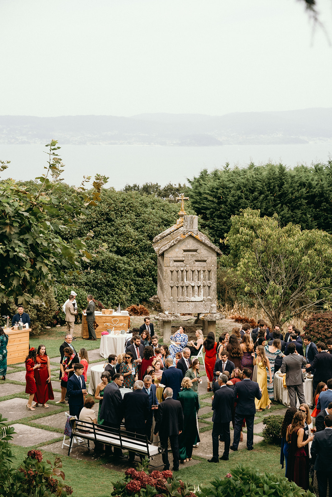 En el Jardín del Hórreo les esperaban sus invitados que empezaban a disfrutar de la comida de Eventos Solla además de la música en directo y la luz y la vida de nuestro jardín.